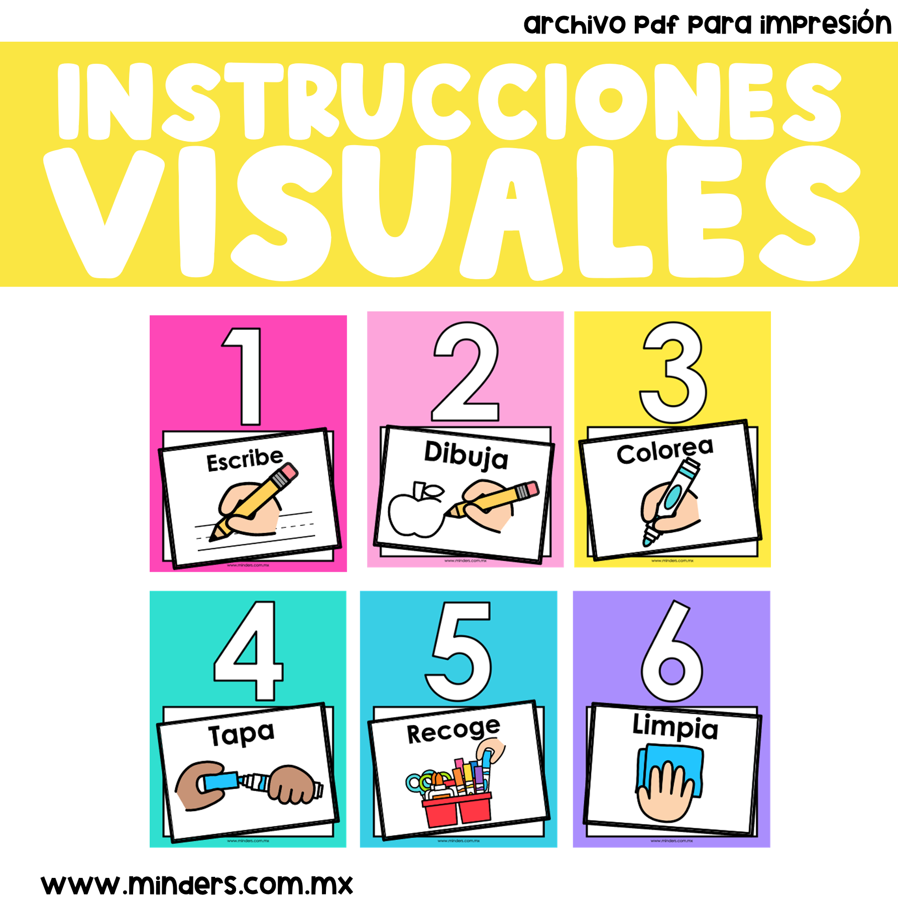 👀 ¡Facilita la comprensión y organización en el aula con instrucciones visuales claras! Este material es ideal para ayudar a los niños a seguir rutinas y pasos de manera independiente.